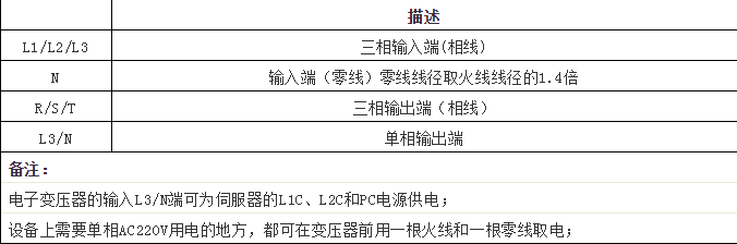 1、輸入3相380V AC 電源N端必須接零線(不是雙色接地線),電子變壓器與伺服驅動器之間不用接斷路器(EST智能電子變壓器本身具有過流、過壓保護功能),請在380V AC 輸入端前用斷路器控制電閉合。