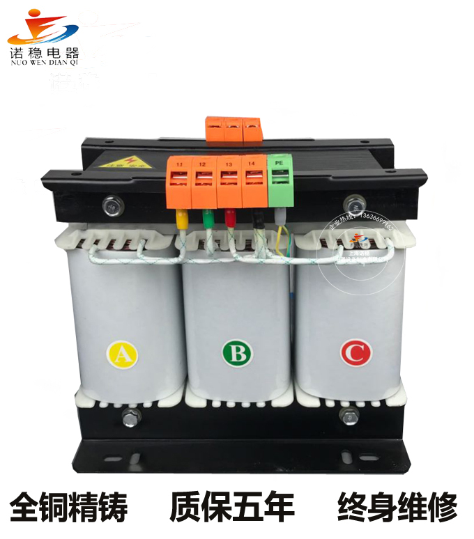 2、輸入、輸出三相電源線,應(yīng)按變壓器接線板母線顏色:黃、綠、紅分別接A相、B相、C相,中性零線應(yīng)與變壓器的中性零線相接,接地線與變壓器外殼(變壓器帶有外殼,應(yīng)與香體標(biāo)志對應(yīng))。